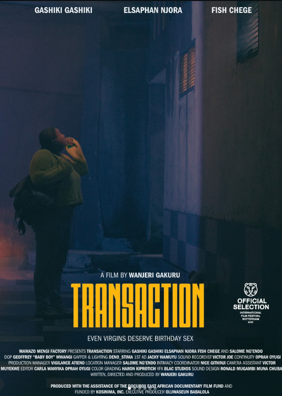 TRANSACTION – A short by Wanjeri Gakuru, Transaction follows Waks, a plus-sized 25-year-old lady who decides to experience sexual pleasure on her own terms. Defiant of religious and familial pressure, she visits a male brothel where she encounters Mburu wa Thao, a sex worker who connects with her not only physically but emotionally, a catalyst for her to overcome the fear and mental barriers rooted in stigmas.