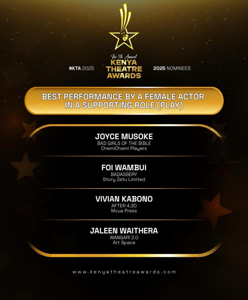 An analysis of the 2026 nominations indicates that a small number of productions achieved significant cross-category recognition. Midnight Poetry emerged as the most nominated production, receiving at least eight nominations across major areas, including direction, musical score, sound design, lighting design, stage management, acting (monologue), best production, and spoken word production, reflecting both artistic depth and technical excellence. Free Me followed closely with at least six nominations, spanning directing, playwriting, sound design, supporting and leading performances, and best production, highlighting the strength of its ensemble and creative team. Bad Girls of the Bible secured at least six nominations across directing, playwriting, costume design, supporting performances, and best production, demonstrating consistent recognition across performance and design categories. The Matatu From Watamu ‘Drove Into The Sea’ recorded five nominations, cutting across children’s theatre, choreography, costume design, set design, and young actor categories, signaling its broad creative impact. Other productions with multiple nominations include Blue Stockings, with five nominations across acting, choreography, sound design, stage management, and youth performance categories, and Against The Tide, which received three nominations largely concentrated in performance categories.